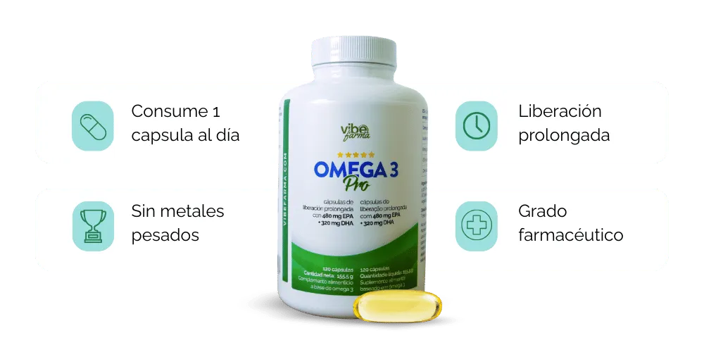 Este suplemento de Omega 3 es una elección perfecta para aquellos que buscan mejorar su salud y bienestar. Con su alta concentración de Omega 3 y tecnología de liberación prolongada, podrás obtener todos los beneficios que el Omega 3 tiene para ofrecer, sin preocuparte por las molestias de las regurgitaciones. No pierdas más tiempo, mejora tu salud y bienestar con Omega 3 Pro de Vibefarma. Haz tu pedido hoy mismo y empieza a disfrutar de todos los beneficios que el Omega 3 tiene para ofrecer.